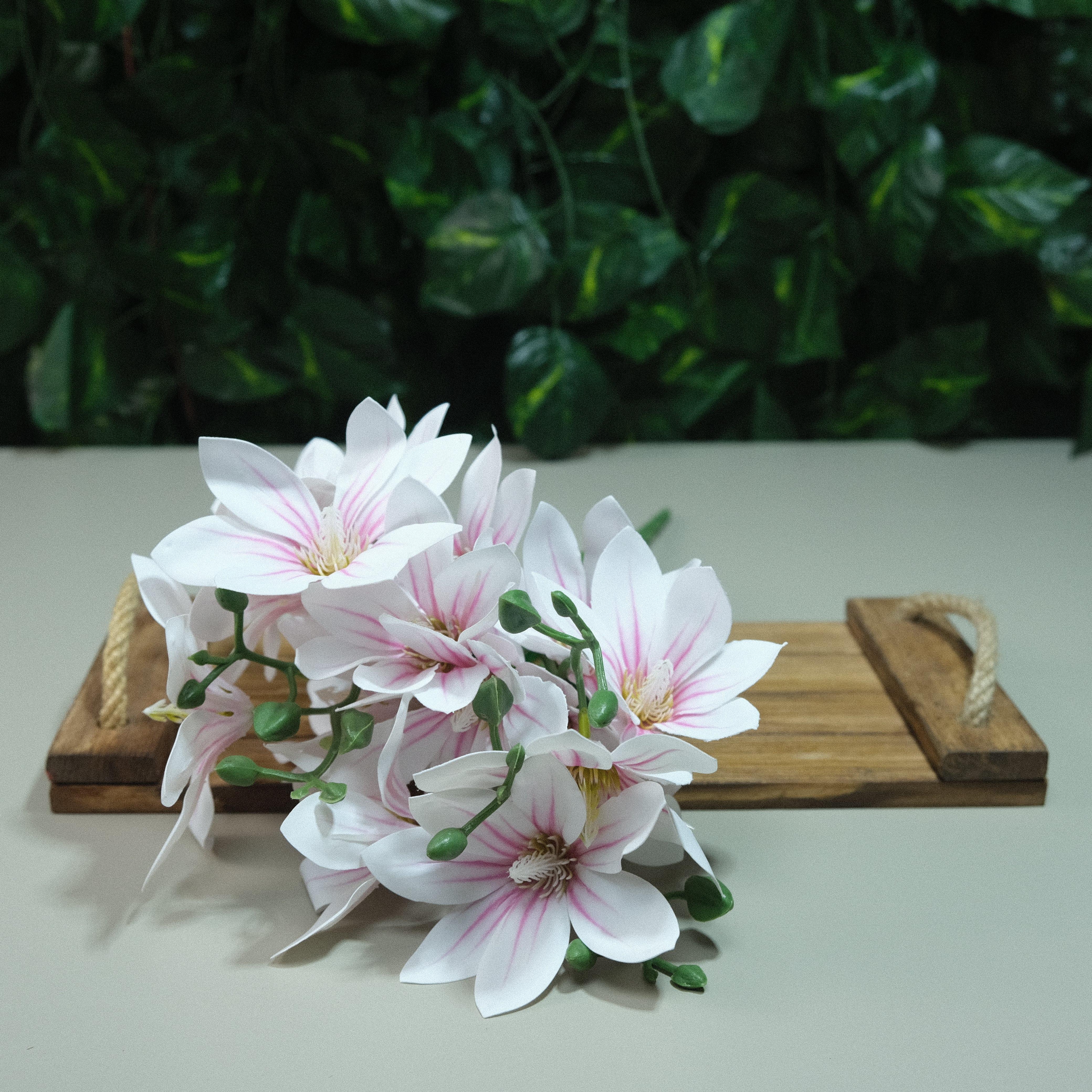 Gerçek Dokulu Yıldız Manolya 5 Dal 47 cm Pembe Damarlı Islak Manolya Demeti