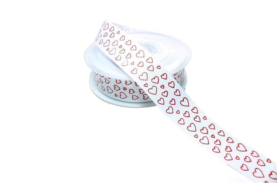 Kırmızı Kalp Baskılı Beyaz Grogren Kurdele (1442014772245)