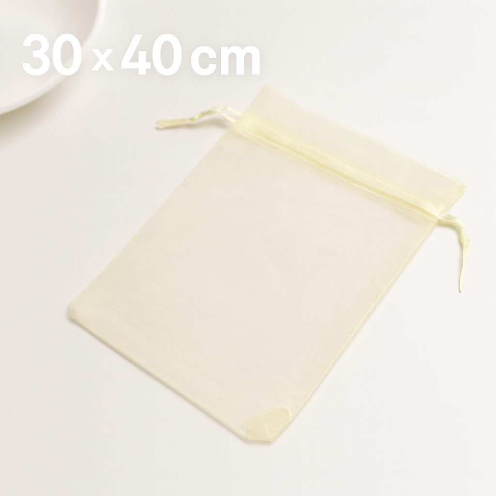 Zarafeti, sadeliği ve şıklığı bir arada sunan Krem Organze Şeffaf Tül Kese, büyük boy tasarımıyla özel günlerinizin en göz alıcı tamamlayıcısıdır. Gelin bohçası, çeyiz, havlu, seccade, yazma, terlik ve hediyelik sunumlarında şeffaf dokusuyla içindeki ürünü zarif biçimde sergiler. Krem tonunun sade ışıltısı, hem klasik hem modern konseptlerle mükemmel uyum sağlar.