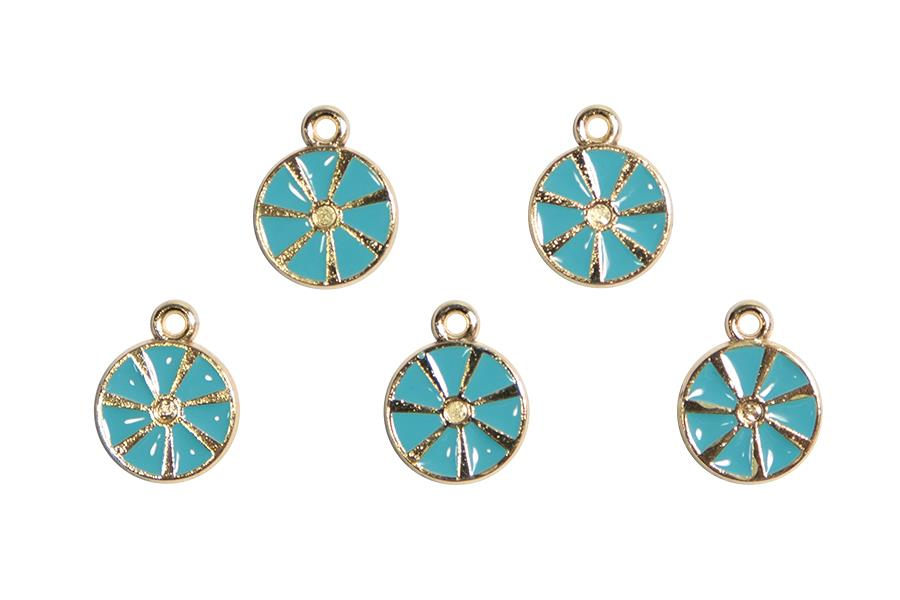 Sarı kaplama Kolye Ucu Çarkıfelek Figürü 5 adet Turkuaz