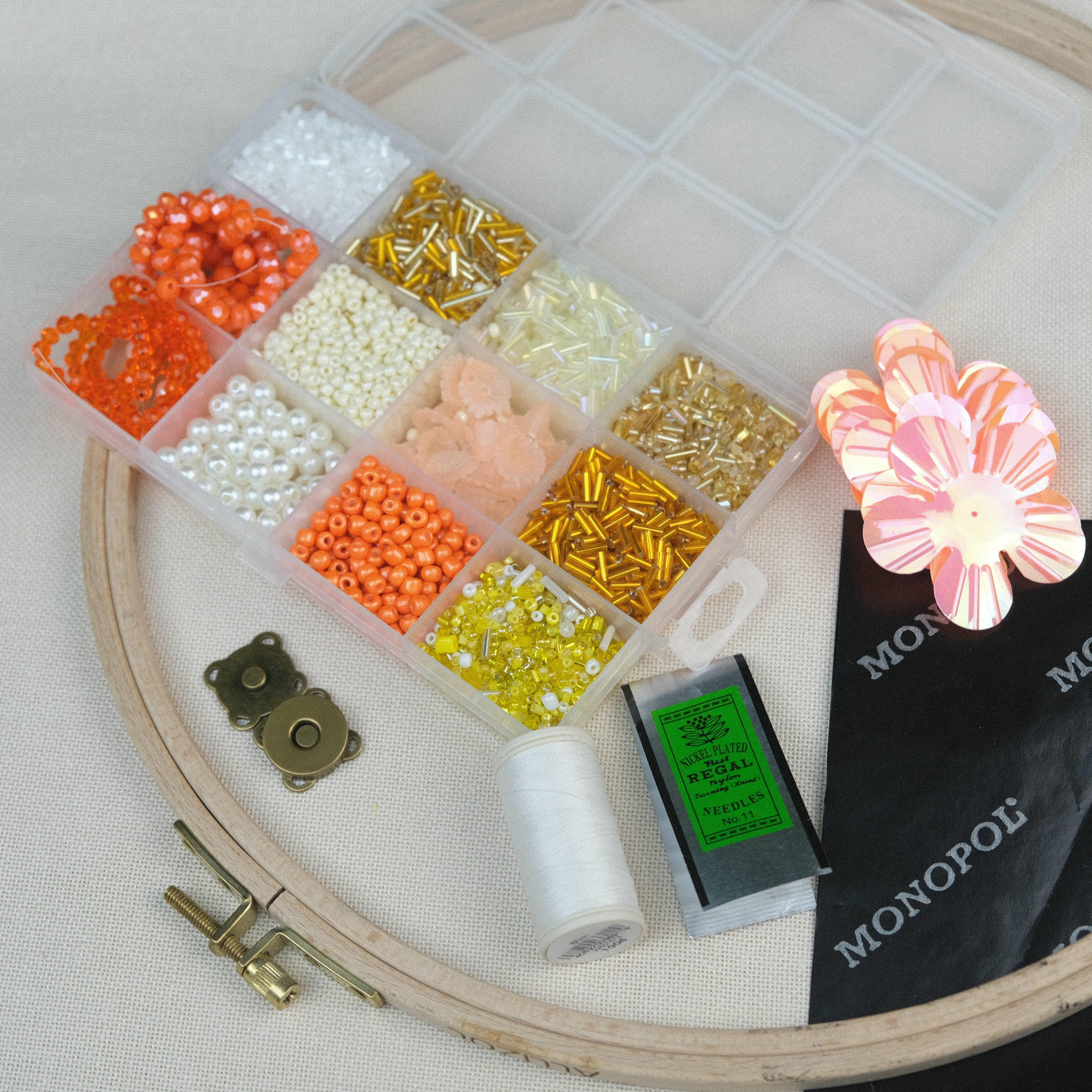 Turuncu Tonları Boncuklu Çanta Yapım Seti 13 Farklı Model Boncuk ve Tüm Malzemeler Yazın trend ürünü olan boncuk işlemeli çantalar için kullanmanız gereken tüm malzemeler bu sette sizin için hazırlandı Set içeriğinde 12 farklı model boncuk 1 adet pul modeli bulunuyor Set içeriğinde görseldeki her modelden yaklaşık 20 şer gram ürün bulunuyor Bu set ile 1 den fazla çanta yapmanız mümkün !! 1 adet 12 bölmeli kutu 1 pk boncuk iğnesi 1 adet kopmaz nylbond boncuk işleme ipi 1 adet oksit dikilebilir mıknatıslı çanta klips 50 cm kumaş